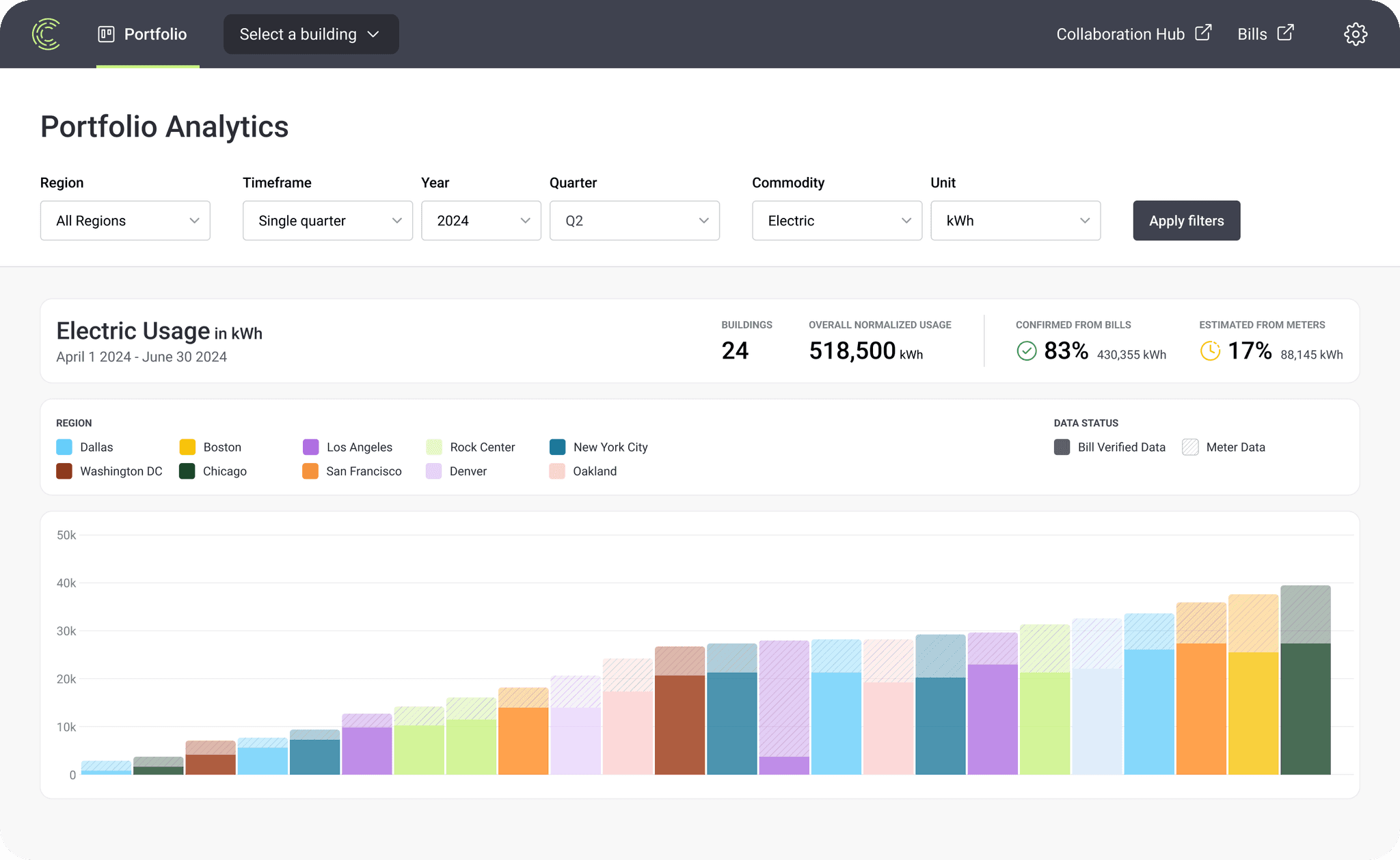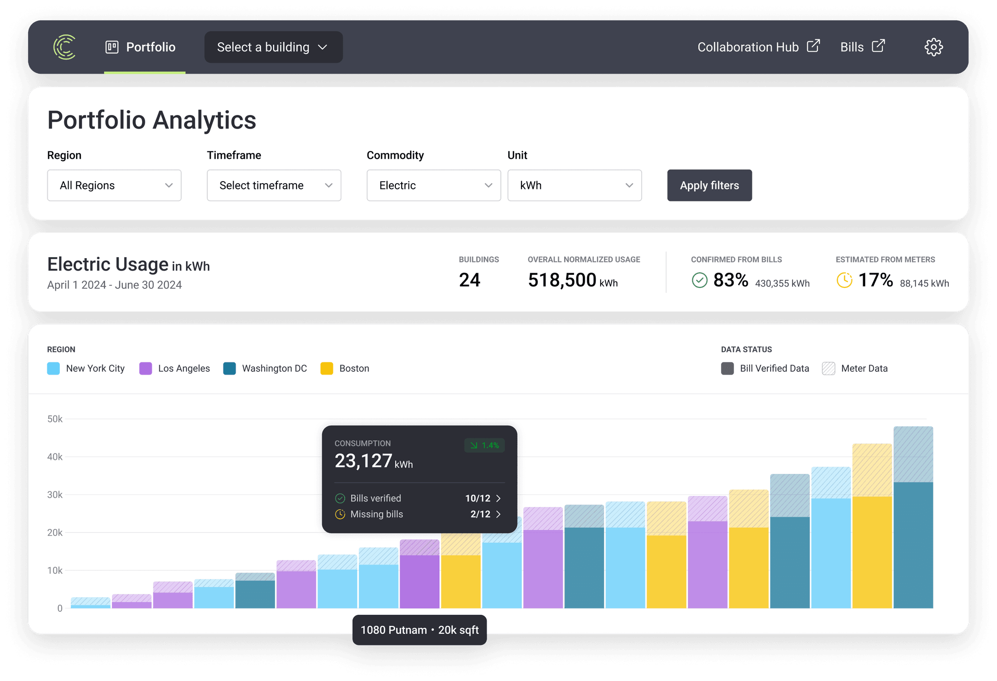 Differentiate bill data (verified) from meter data (unverified) and view KPIs