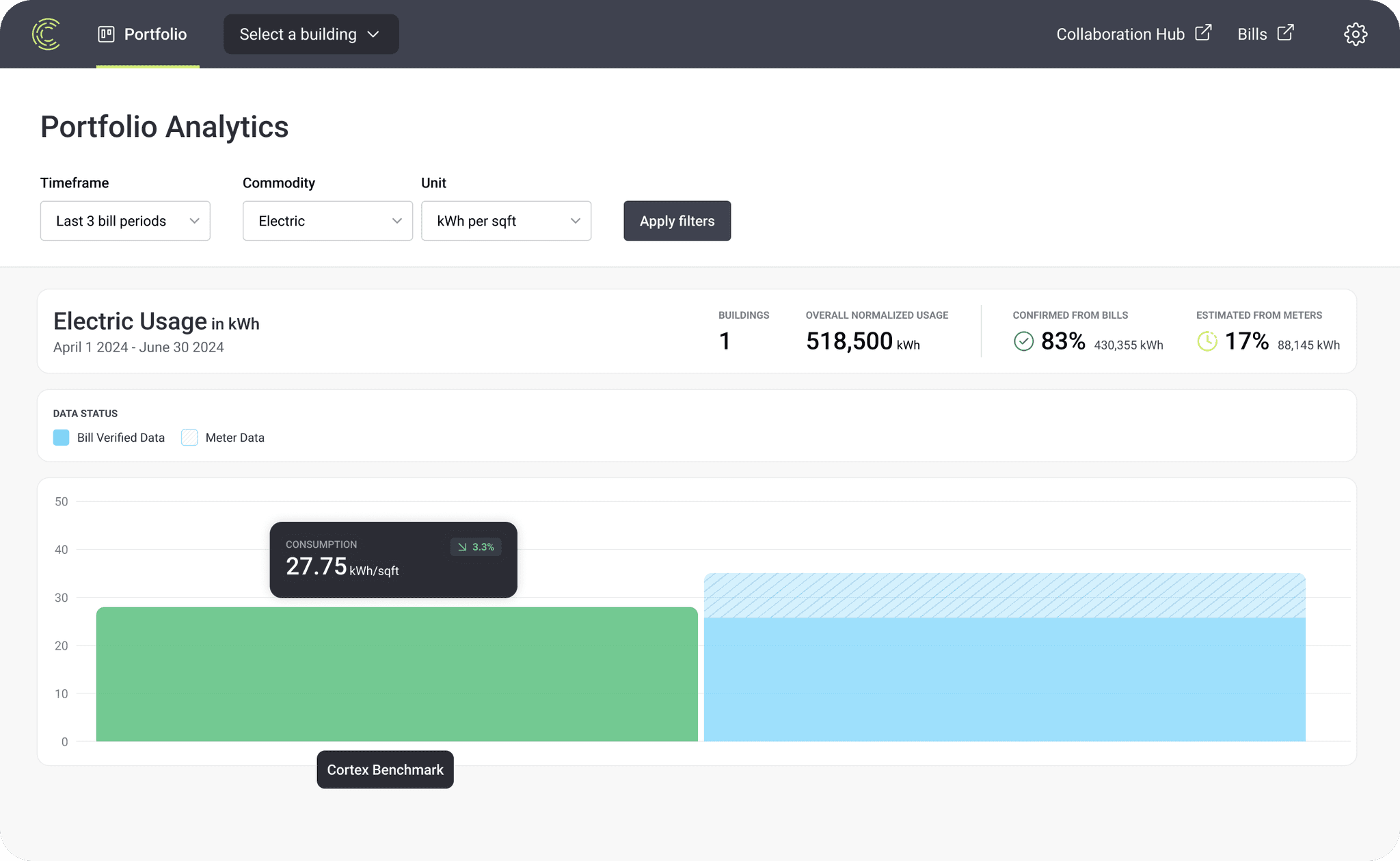 Cortex client portfolios contain an array of different amount of buildings, number of regions, and data tracking capabilities. It was important to ensure the analytics tool was designed for all client types.